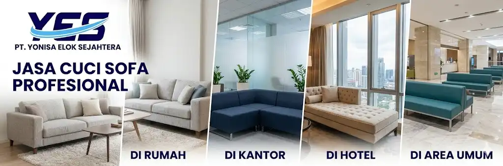 Jasa cuci sofa Jakarta dari Yonisa Elok Sejahtera adalah pilihan tepat untuk mengatasi sofa berdebu, terkena tumpahan minuman, sofa bau apek, dan sebagainya. Dengan teknologi modern, prosesnya jauh lebih praktis karena bau apek hilang dan sofa lebih cepat kering.